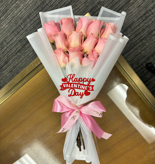 A classic arrangement of 12 premium white roses paired with lush greenery and designed in...