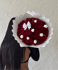 As a size reference, the bouquet in the photo features 50 roses.