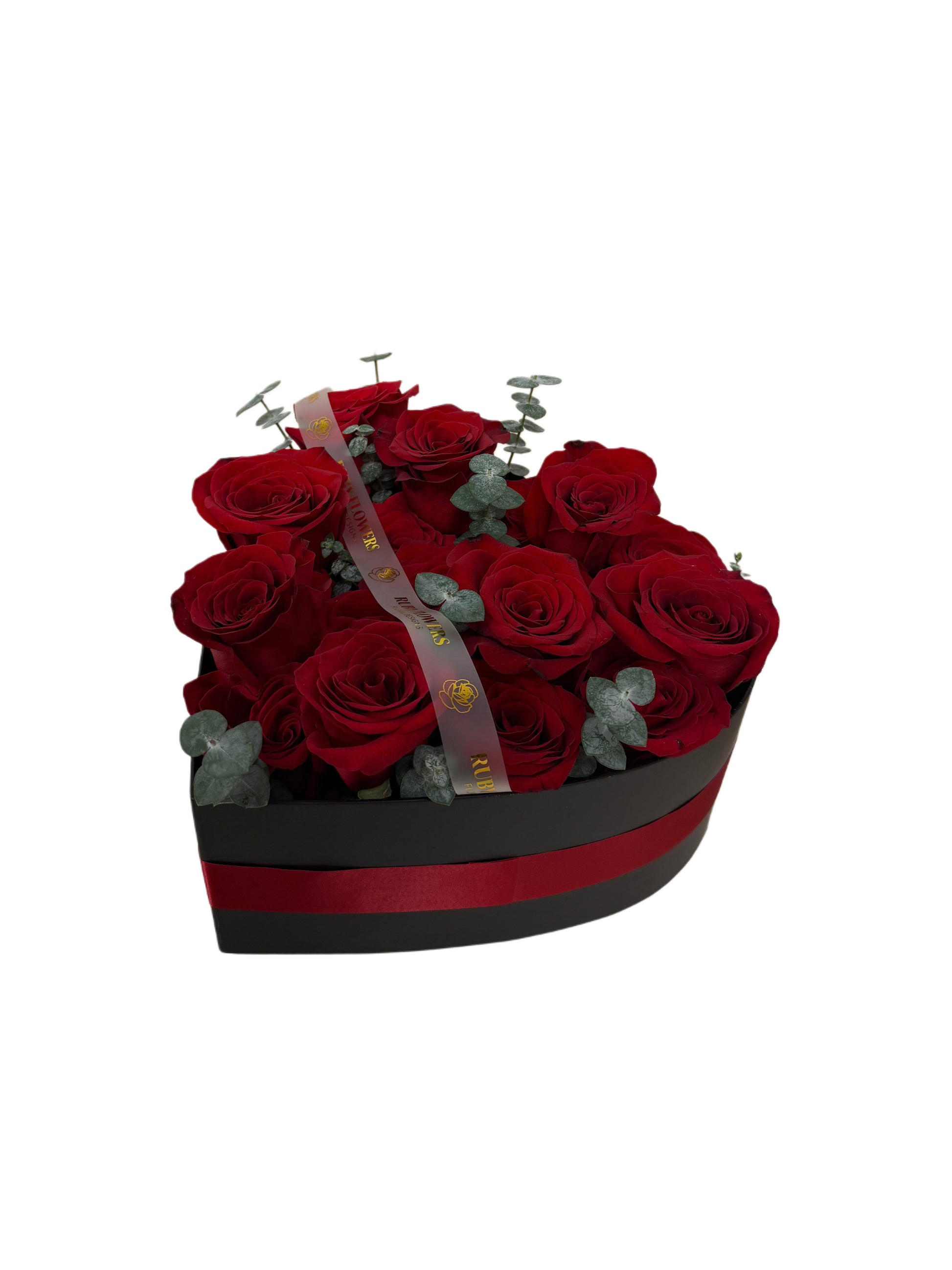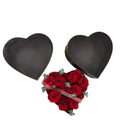 Heart box with premium red roses designed in unevenness, combining high and low roses to create a deep and sophisticated visual effect. A modern and elegant arrangement that transmits love, passion and exclusivity, ideal for anniversaries, proposals and special occasions